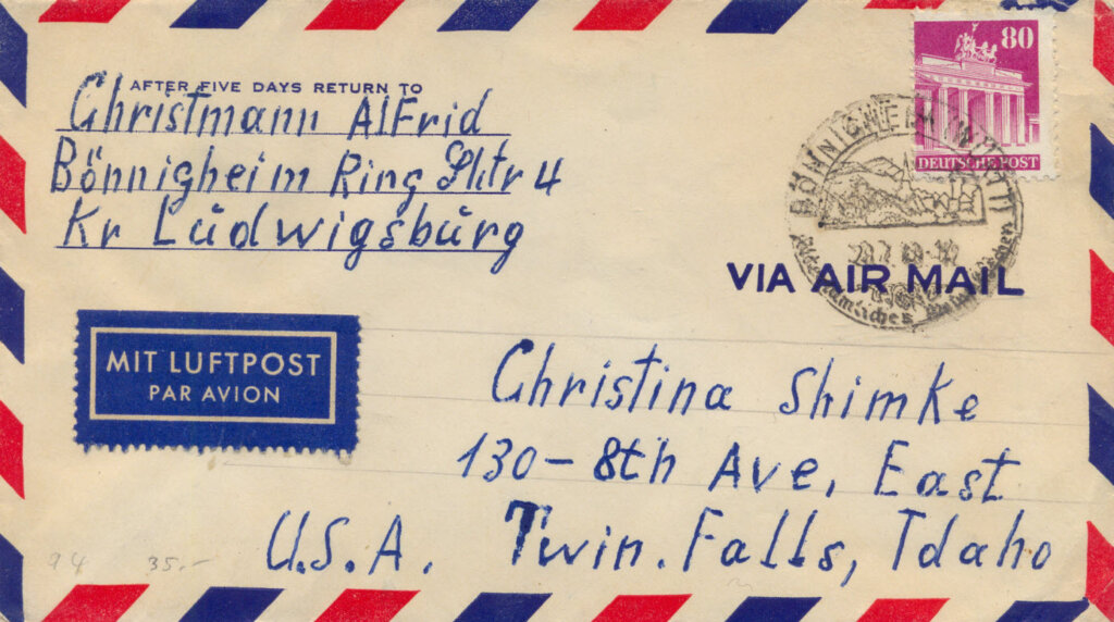 von Bönnigheim (Württ) nach Twin Falls am 28.3.49